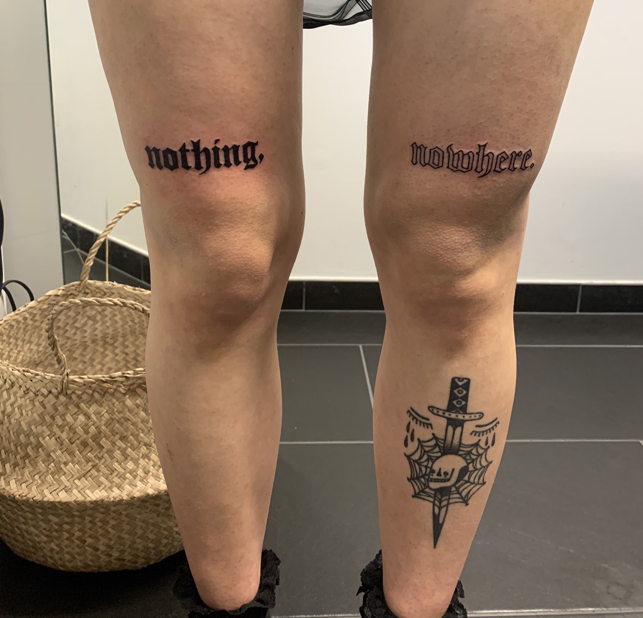 Find and save ideas about word tattoos over knee on pinterest. Shop 4,000+ artist designs or create your own. Discover top ideas to inspire your next tattoo and make a statement. Discover pinterest’s best ideas and inspiration for knee tattoos words. Express yourself with a unique and meaningful word tattoo on your knee.